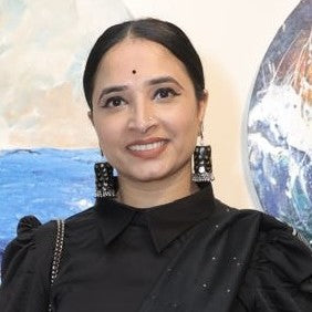 Himani PasrichaAbstract, Acrylic on Canvas “Mukti” captures the essence of a woman who has chosen herself — her joy, her truth, her rhythm. She is not running ...