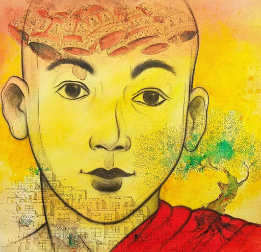 Yashpal KambleFigurative, Charcoal, Acrylic on Canvas This artwork explores the life of Buddhist monks through the mediums of charcoal and acrylics. With a fo...